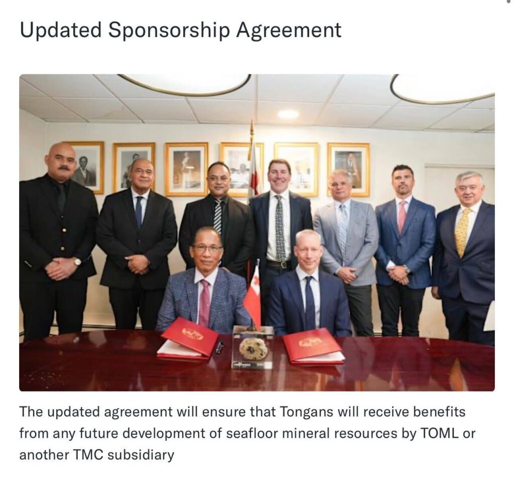 That makes the government’s decision to sign a revised Sponsorship Agreement with Tonga Offshore Mining Ltd ,a subsidiary of The Metals Company ,all the more jarring. The announcement wasn’t made at home but through a press release issued in New York. Most Tongans learned about it from overseas media. Even more troubling, the deal appears to have been in the works all along.